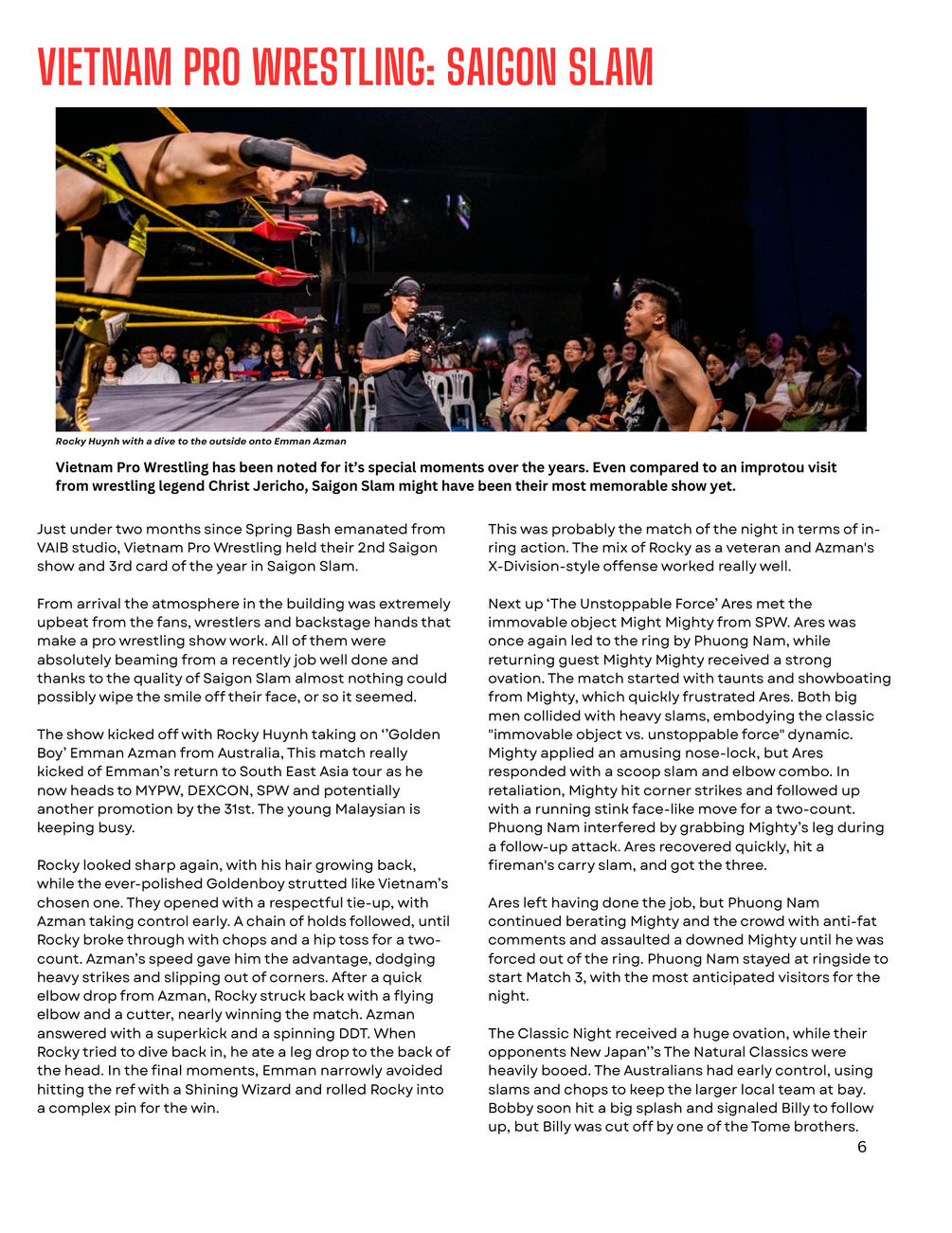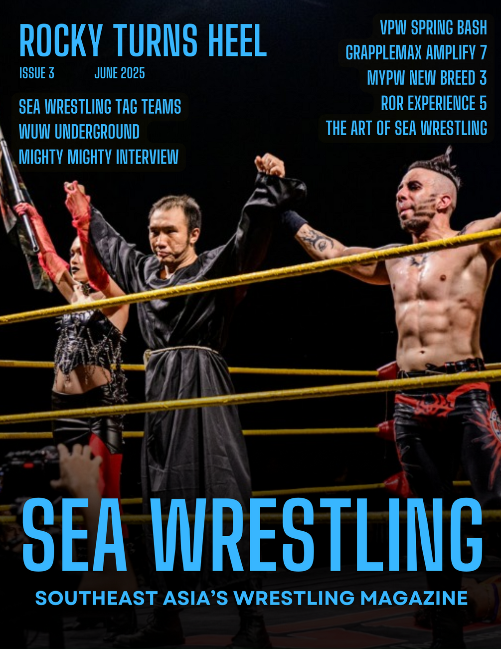 SEA Wrestling Magazine – Issue 3 (June 2025) documents one of the most dramatic and creatively charged periods in Southeast Asian professional wrestling, headlined by a moment that reshaped the regional landscape: Rocky Huynh’s shocking heel turn in Vietnam Pro Wrestling.