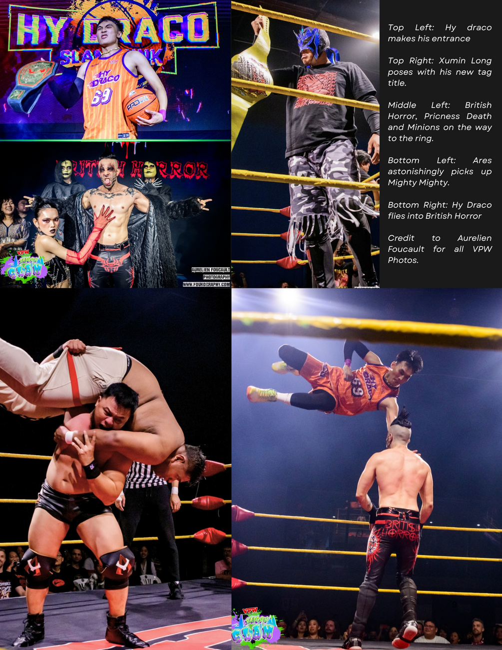 At the centre of the issue is extensive coverage of VPW Spring Bash and Saigon Slam, culminating in a stunning betrayal that saw VPW’s founder align himself with The British Horror to seize the Openweight Championship. The magazine breaks down the night in detail, examining the in-ring action, the emotional crowd response, and the wider implications of Rocky’s transformation from standard-bearer to villain. It is presented not as a cheap swerve, but as a calculated creative turning point that signalled VPW’s confidence in long-form storytelling and darker narrative direction.