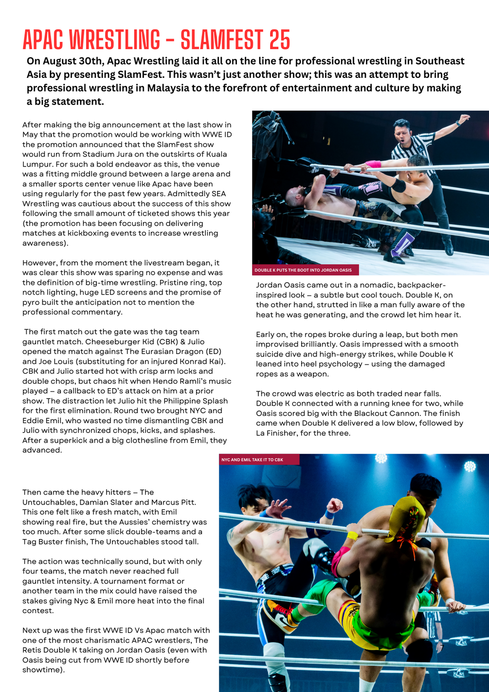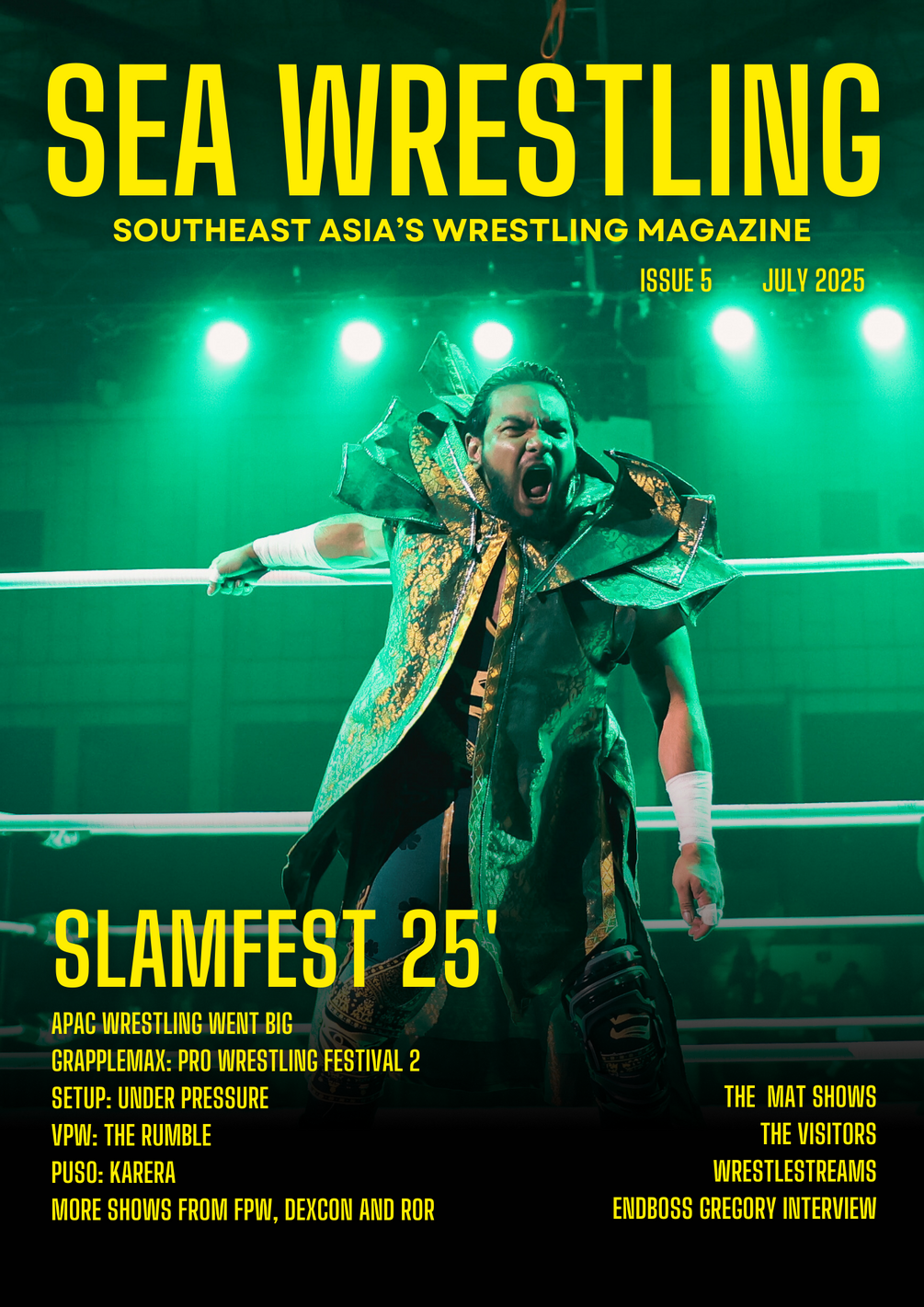 Our 5th issue takes a look at the groundbreaking event Apac SlamFest 25. We cover the amazing summer shows from Grapplemax, Vietnam Pro Wrestling, SETUP Thailand, Malaysia Pro Wrestling, Puso, Dexcon and Ring of Rebirth. There's an in depth look at the SEA Wrestling signature mat shows, a feature on some of the most famous names to wrestle in Southeast Asia and an insightful discussion with Greg Ho, Grapplemax founder and CEO.
